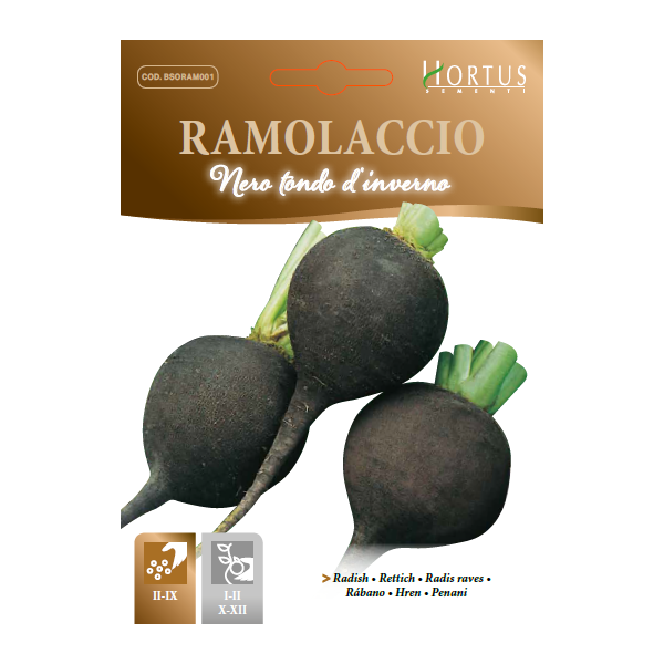 Developed leaf; round root with a greenish-black outer surface and white interior. Late variety.